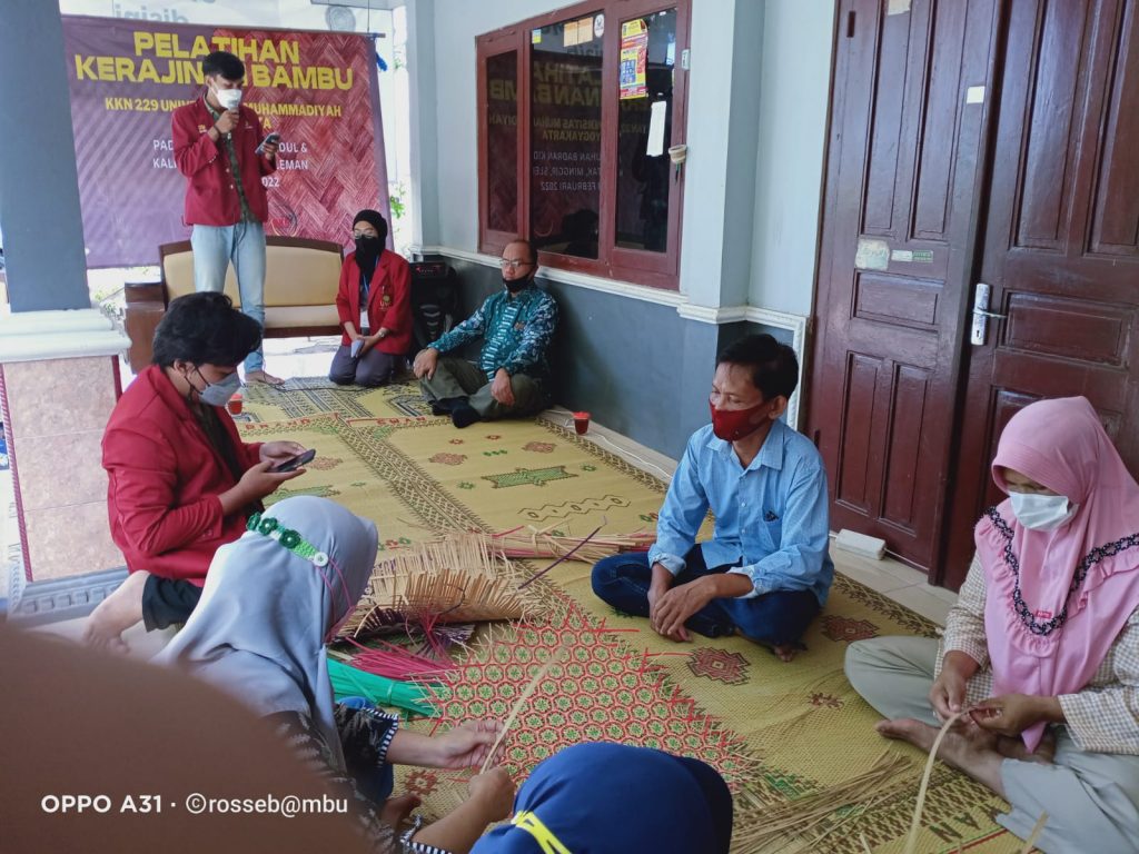 Pada Selasa 8 Februari 2022 di Minggir Sleman, tim KKN 229 Universitas Muhammadiyah Yogyakarta (UMY) bersinergi dengan Dekranasda Kabupaten Sleman mengadakan "Pelatihan Kerajinan Bambu" .