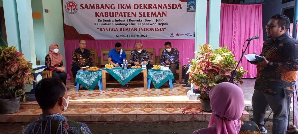 Ketua Umum Dekranasda Kabupaten Sleman, Drs. H. Sri Purnomo, M.Si., beserta jajaran pengurus Dekranasda Sleman, Kamis 31 Maret 2022, melaksanakan kegiatan Sambang IKM Dekranasda Kabupaten Sleman ke Sentra Industri Konveksi dan Bordir Joho Condongcatur Depok Sleman. Dalam laporan penyelenggara yang disampaikan Sekretaris Dekranasda Kabupaten Sleman Rian Hermawan,S.T, kegiatan sambang IKM merupakan upaya Dekranasda Kabupaten Sleman dalam rangka meningkatkan informasi /wawasan bagi IKM Sleman melalui diskusi langsung, mendukung Gerakan Nasional Bangga Buatan Indonesia, serta mendukung upaya mendorong bangga terhadap produk Sleman.